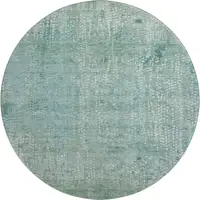 Taupe and Blue Ikat Power Loom Worn Faded Area Rug With Fringe