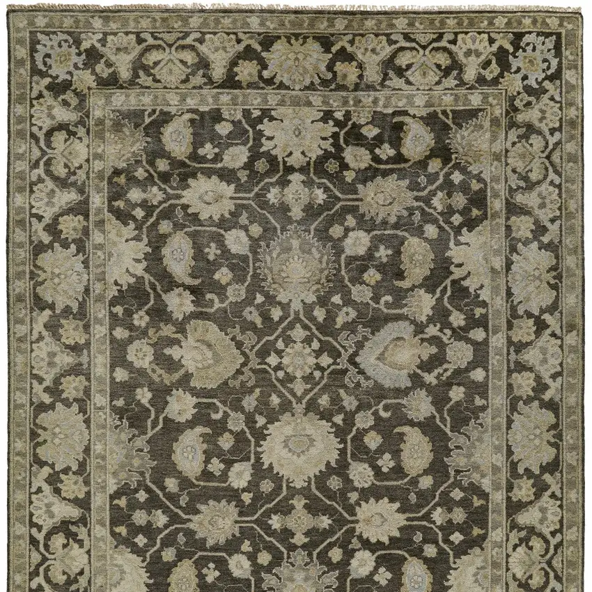 Taupe and Gray Wool Floral Hand Knotted Area Rug