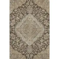Taupe And Ivory Floral Washable Area Rug With UV Protection