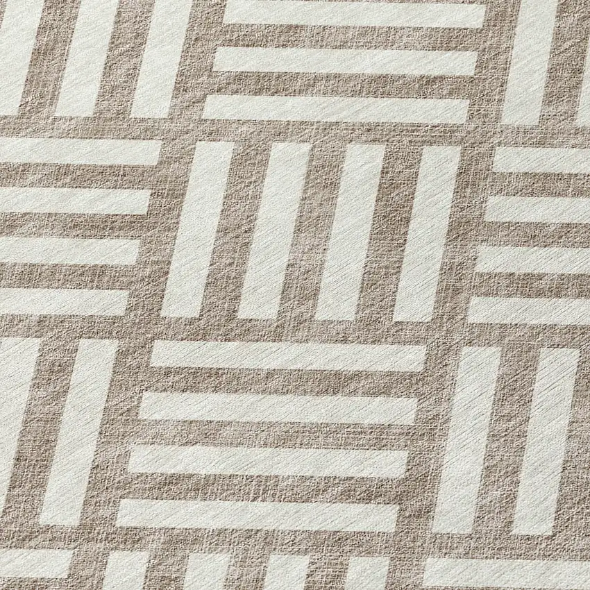 Taupe And Ivory Geometric Washable Indoor Outdoor Area Rug