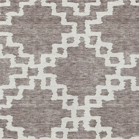 Taupe And Ivory Geometric Washable Indoor Outdoor Area Rug