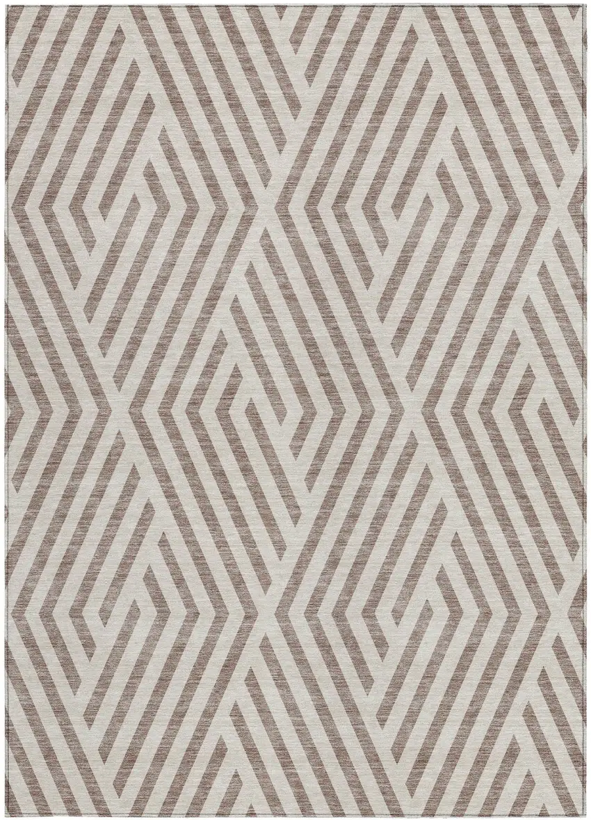 Set an inviting tone in your space with this 9-foot x 12-foot taupe and ivory geometric washable stain resistant non skid indoor outdoor area rug. This rectangle shaped rug features a geometric design in taupe and ivory to give it visual interest. A classic shape marries with good looking design for your space ideal for spaces with kids and pets, this rug is stain resistant to help repel stains and spilled liquids. Place this area rug against a hardwood or tile floor and it will enliven your living space with style and sophistication. 108-inch H x 144-inch W x 0.19-inch D