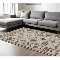 Taupe And Ivory Striped Washable Area Rug With UV Protection