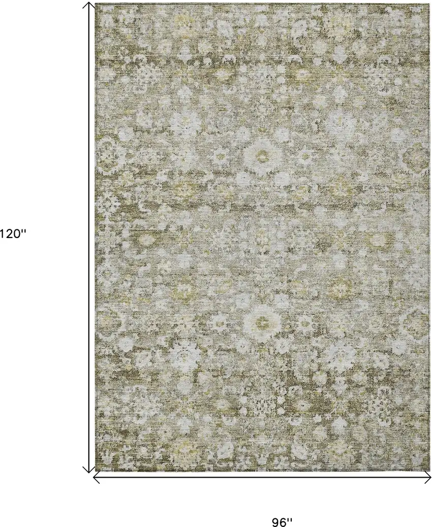Taupe Beige And Gold Oriental Washable Indoor Outdoor Area Rug