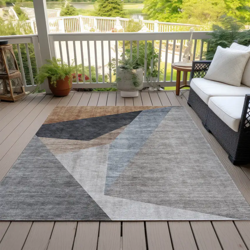 Taupe Beige And Gray Abstract Washable Indoor Outdoor Area Rug