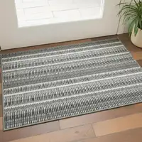 Taupe Beige And Gray Damask Washable Area Rug With UV Protection