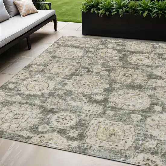 Add great coloration and comfortable texture to your space with this 5-foot x 8-foot taupe beige and gray floral washable indoor outdoor area rug. This rectangle shaped rug features a floral design that will work well both indoors or out. A classic shape marries with good looking design for your living room, hall, bedroom, porch, patio, or poolside. Ideal for outdoor spaces or high traffic areas with kids and pets, this rug is made from heavy duty polyester that is stain resistant to help repel water, dirt, and stains. Versatile in use, durable, and easy to maintain, this rug is an ideal solution to add a decorative and inviting touch to your indoor or outdoor space. 60-inch h x 90-inch w x 0.19-inch d.
