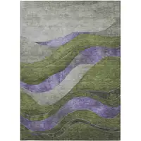 Taupe Beige And Green Geometric Washable Indoor Outdoor Area Rug