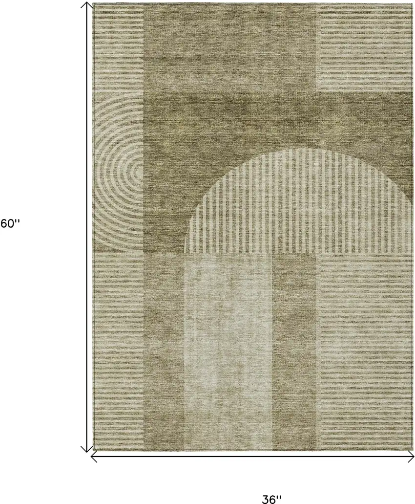 Taupe Beige And Tan Geometric Washable Indoor Outdoor Area Rug