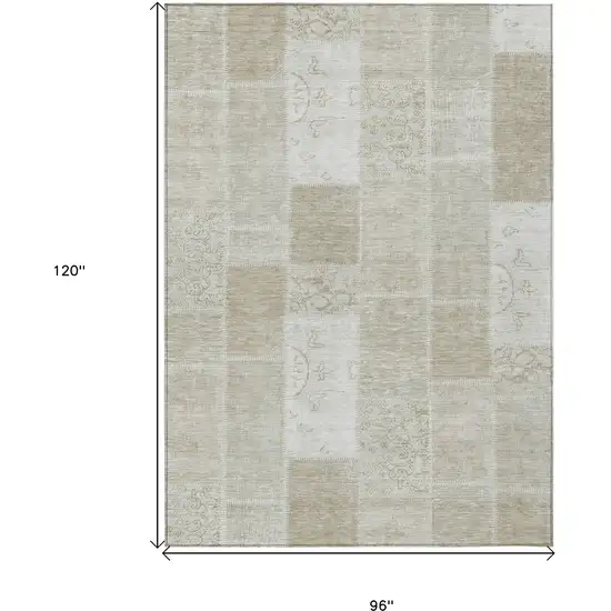 Add some artistry to your room with this 8-foot x 10-foot taupe beige and tan patchwork washable indoor outdoor area rug. This rectangle shaped rug features a patchwork design that will work well both indoors or out. A classic shape marries with good looking design for your living room, hall, bedroom, porch, patio, or poolside. Ideal for outdoor spaces or high traffic areas with kids and pets, this rug is made from heavy duty polyester that is stain resistant to help repel water, dirt, and stains. Makes a great way to dress up your patio, porch, or poolside, but also works well as a durable and easy to maintain option in the kitchen, family room, or mudroom. 96-inch h x 120-inch w x 0.19-inch d.