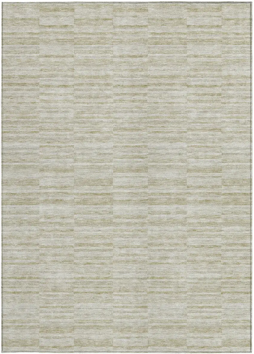 This 8-foot x 10-foot taupe beige and tan striped washable indoor outdoor area rug, is a great way to add warmth to a room. This rectangle shaped rug features a striped design that will work well both indoors or out. A classic shape marries with good looking design for your living room, hall, bedroom, porch, patio, or poolside. Ideal for outdoor spaces or high traffic areas with kids and pets, this rug is made from heavy duty polyester that is stain resistant to help repel water, dirt, and stains. Versatile in use, durable, and easy to maintain, this rug is an ideal solution to add a decorative and inviting touch to your indoor or outdoor space. 96-inch h x 120-inch w x 0.19-inch d.