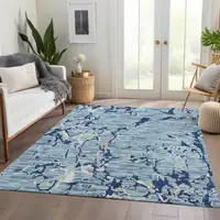 Taupe Blue And Beige Geometric Washable Area Rug With UV Protection