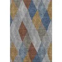 Taupe Blue And Green Striped Washable Area Rug With UV Protection
