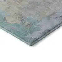 Taupe Blue And Ivory Abstract Washable Area Rug With UV Protection