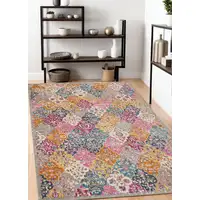 Taupe Blush And Teal Geometric Washable Area Rug With UV Protection