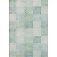 Taupe Blush And Teal Geometric Washable Area Rug With UV Protection