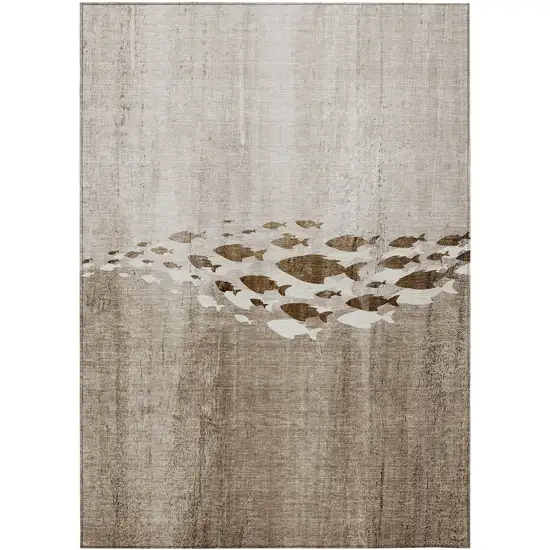 Taupe Brown And Khaki Nautical Washable Indoor Outdoor Area Rug