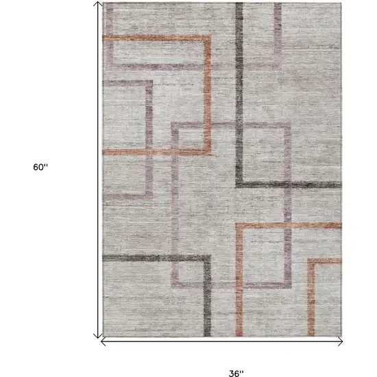 Taupe Charcoal And Copper Geometric Washable Indoor Outdoor Area Rug