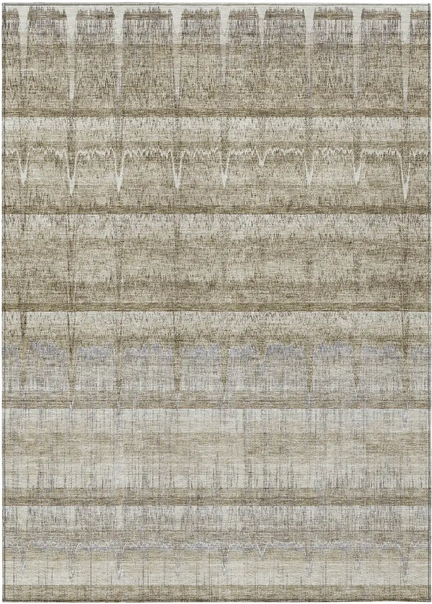 Set an inviting tone in your space with this 5-foot x 8-foot taupe gray and beige striped washable indoor outdoor area rug. This rectangle shaped rug features a striped design that will work well both indoors or out. A classic shape marries with good looking design for your living room, hall, bedroom, porch, patio, or poolside. Ideal for outdoor spaces or high traffic areas with kids and pets, this rug is made from heavy duty polyester that is stain resistant to help repel water, dirt, and stains. Versatile in use, durable, and easy to maintain, this rug is an ideal solution to add a decorative and inviting touch to your indoor or outdoor space. 60-inch h x 90-inch w x 0.19-inch d.