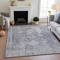 Taupe Gray And Ivory Floral Medallion Washable Area Rug With UV Protection