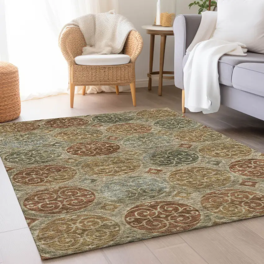Taupe Green And Gold Trellis Washable Indoor Outdoor Area Rug