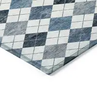 Taupe Ivory And Blue Geometric Washable Indoor Outdoor Area Rug