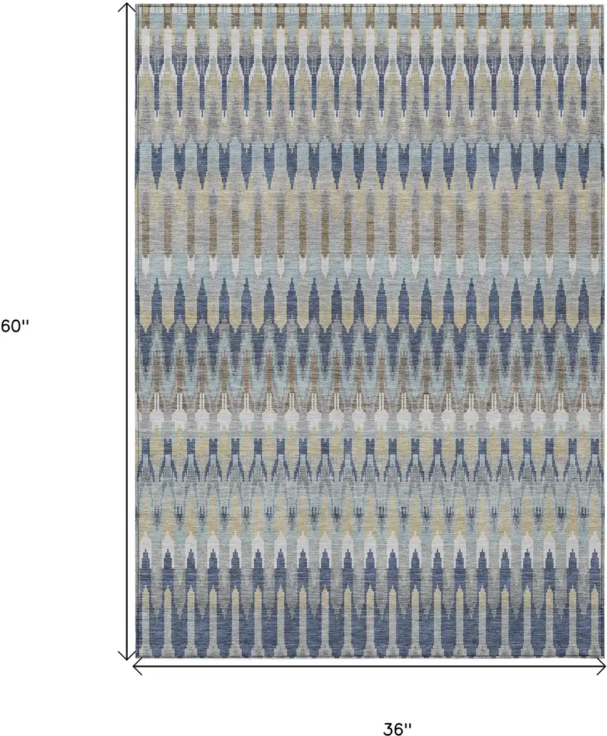 Set an inviting tone in your space with this 3-foot x 5-foot taupe navy blue and denim blue southwestern washable indoor outdoor area rug. This rectangle shaped rug features a southwestern design that will work well both indoors or out. A classic shape marries with good looking design for your living room, hall, bedroom, porch, patio, or poolside. Ideal for outdoor spaces or high traffic areas with kids and pets, this rug is made from heavy duty polyester that is stain resistant to help repel water, dirt, and stains. Versatile in use, durable, and easy to maintain, this rug is an ideal solution to add a decorative and inviting touch to your indoor or outdoor space. 36-inch h x 60-inch w x 0.19-inch d.