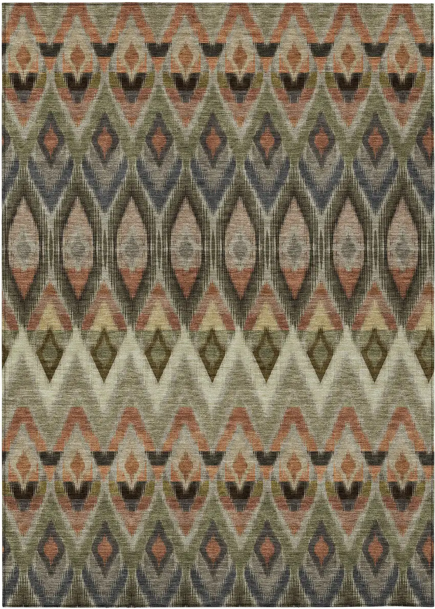 This 8-foot x 10-foot taupe olive green and beige southwestern washable indoor outdoor area rug, is a great way to add warmth to a room. This rectangle shaped rug features a southwestern design that will work well both indoors or out. A classic shape marries with good looking design for your living room, hall, bedroom, porch, patio, or poolside. Ideal for outdoor spaces or high traffic areas with kids and pets, this rug is made from heavy duty polyester that is stain resistant to help repel water, dirt, and stains. Versatile in use, durable, and easy to maintain, this rug is an ideal solution to add a decorative and inviting touch to your indoor or outdoor space. 96-inch h x 120-inch w x 0.19-inch d.