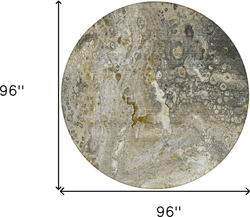 Add great coloration and comfortable texture to your space with this 8-foot round taupe round abstract washable non skid indoor outdoor area rug. This geometric round shaped rug features a abstract pattern in taupe that combines a good looking print with a unique and updated shape. The mix of shape, color, and design gives this rug refreshing visual interest. Ideal for outdoor spaces or high traffic areas with kids and pets, this rug is made from heavy duty polyester that is stain resistant to help repel water, dirt, and stains. Makes a great way to dress up your patio, porch, or poolside, but also works well as a durable and easy to maintain option in the kitchen, family room, or mudroom. 96-inch h x 96-inch w x 0.19-inch d
