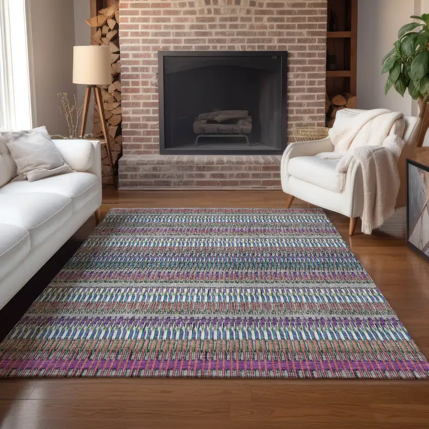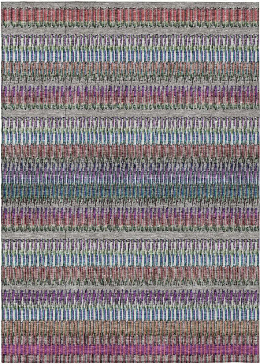 Taupe Striped Washable Non Skid Indoor Outdoor Area Rug