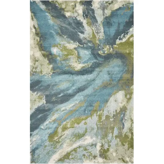 This area rug features vibrant teal abstract splashes that will brighten up any space. Its modern design adds a contemporary and stylish touch to your decor.