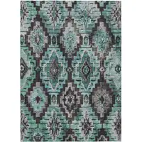 Teal Abstract Washable Non Skid Indoor Outdoor Area Rug