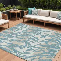 Teal Abstract Washable Non Skid Indoor Outdoor Area Rug