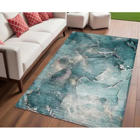 Teal Abstract Washable Non Skid Indoor Outdoor Area Rug