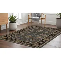 Teal And Gray Geometric Washable Area Rug With UV Protection