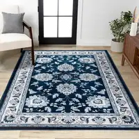 Teal And Gray Oriental Washable Area Rug With UV Protection