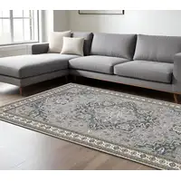 Teal And Ivory Abstract Washable Area Rug With UV Protection