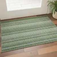 Teal And Ivory Geometric Washable Area Rug With UV Protection