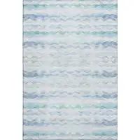 Teal And Ivory Geometric Washable Area Rug With UV Protection