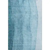 Teal And Ivory Geometric Washable Area Rug With UV Protection