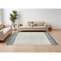 Teal And Ivory Geometric Washable Area Rug With UV Protection