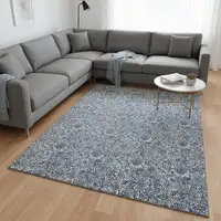 Teal And Ivory Ikat Washable Area Rug With UV Protection