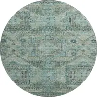 Teal And Ivory Southwestern Washable Area Rug With UV Protection