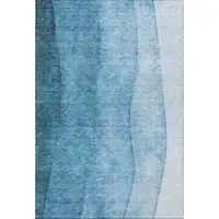 Teal And Ivory Striped Washable Area Rug With UV Protection