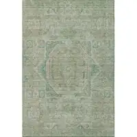 Teal And Ivory Vermicular Washable Area Rug With UV Protection