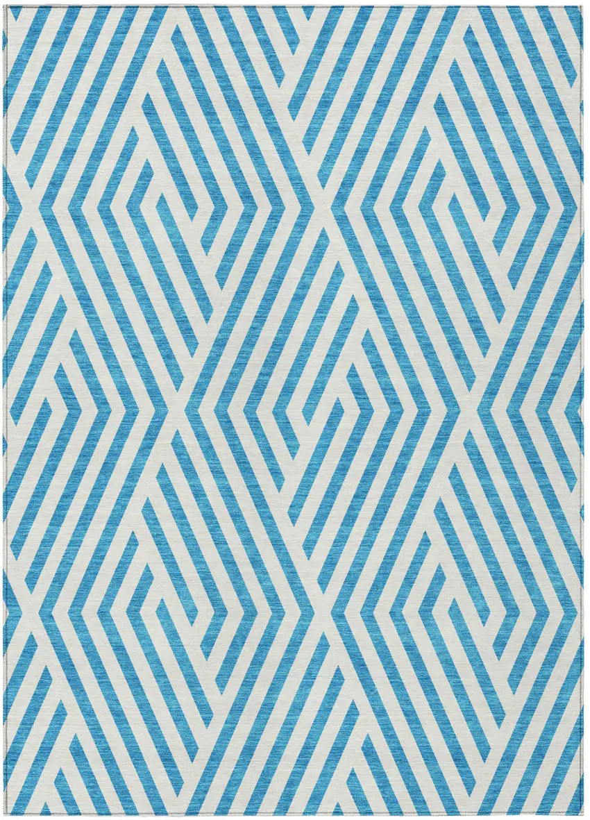 Set an inviting tone in your space with this 10-foot x 14-foot teal and white geometric washable stain resistant non skid indoor outdoor area rug. This rectangle shaped rug features a geometric design in teal and white to give it visual interest. A classic shape marries with good looking design for your space ideal for spaces with kids and pets, this rug is stain resistant to help repel stains and spilled liquids. Place this area rug against a hardwood or tile floor and it will enliven your living space with style and sophistication. 120-inch H x 168-inch W x 0.19-inch D