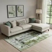 Teal Beige And Ivory Geometric Washable Area Rug With UV Protection