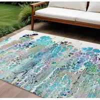 Teal Blue And Aqua Abstract Washable Indoor Outdoor Area Rug