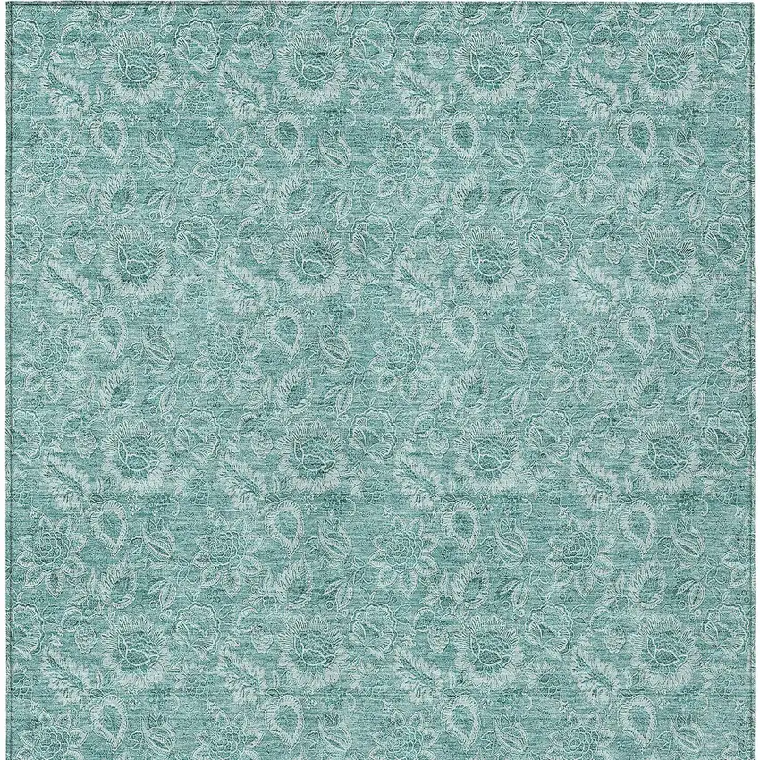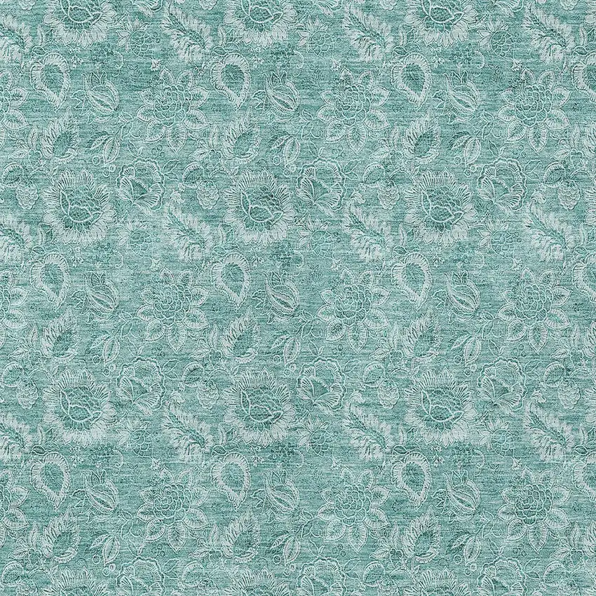 Teal Blue And Aqua Floral Washable Indoor Outdoor Area Rug