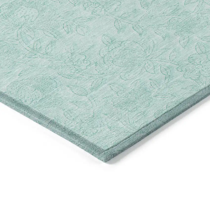 Teal Blue And Aqua Floral Washable Indoor Outdoor Area Rug